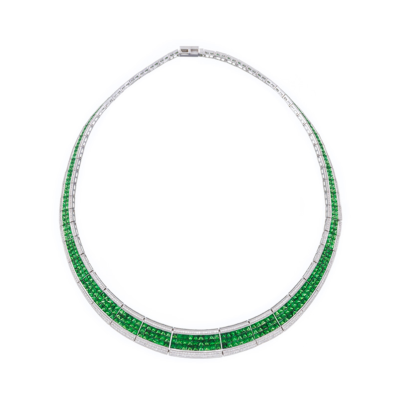 K18WG ツァボライト ダイヤ ミステリーセッティング 楽ラスプ ネックレス TS 35.00ct D 4.00ct