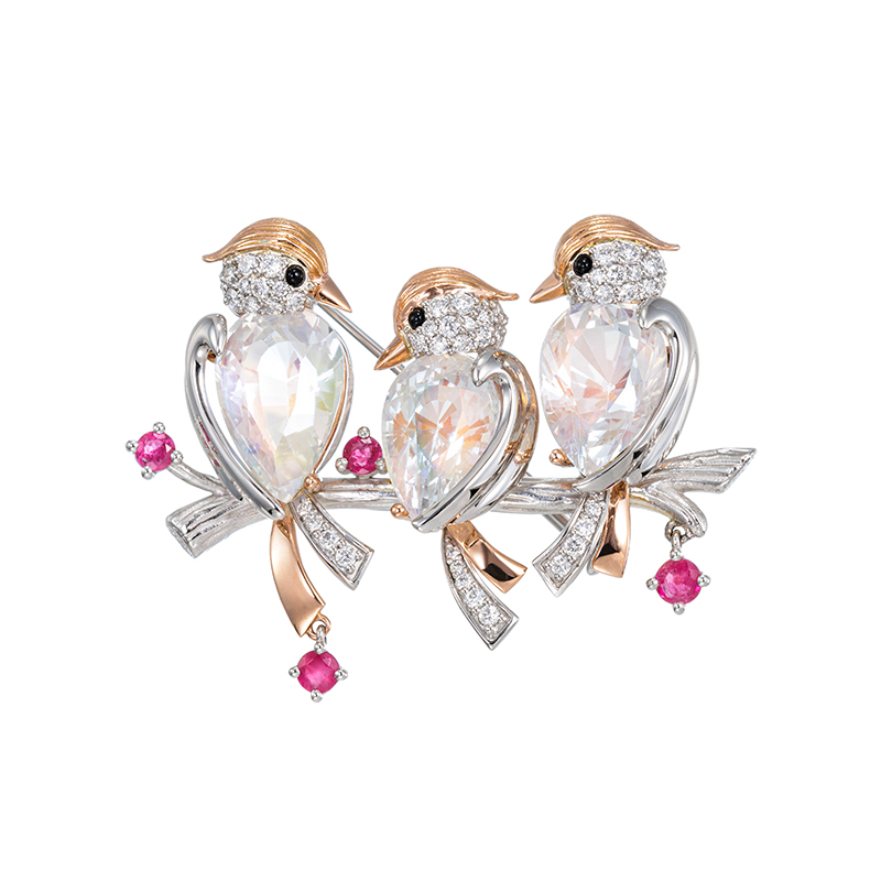 | 【2026年3月ガイド誌掲載】MARIデザイン「ファンタジーバード」 ファンタジーの世界から飛び出してきた鳥をイメージしたペンダントブローチ。ボディには幻想的な風合いを生かしたアンデシン/ラブラドライト、尾や頭にはダイヤモンドを配し、K18ピンクゴールドで嘴や毛並みを表現しました。プラチナ950の止まり木にはお花に見立てたレッドベリルをあしらった贅沢なお仕立てです。 同シリーズ(ペンダントトップ:5087925、5087926、ピアス:5087927) |