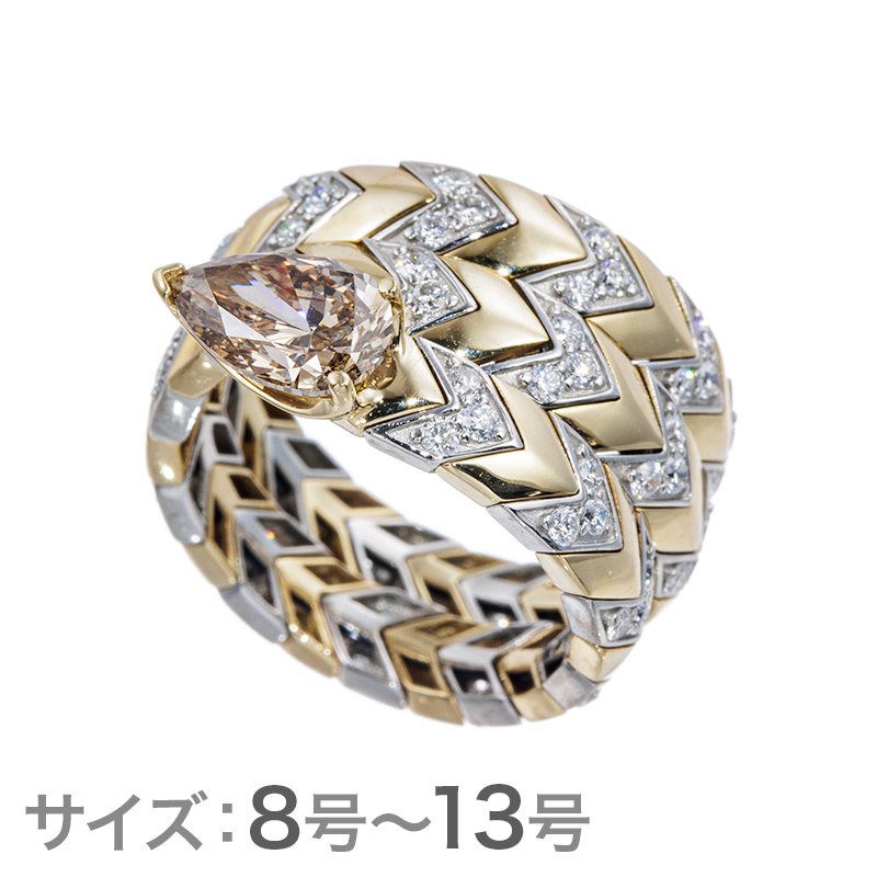 【2025年9月ガイド誌掲載】MARIデザイン 指に巻き付くような美しいフォルムのフレックスリングに、約1.00ctのブラウンダイヤモンドを贅沢にあしらいました。地金に使用したプラチナ950とK18イエローゴールドのコンビネーションが、落ち着きと華やかさを絶妙なバランスで演出。モダンでスタイリッシュな印象を持ちながらも、可動式のアームが指にしなやかにフィットし、心地よい着け心地を実現しました。 同デザイン(14号-19号:5088896) |