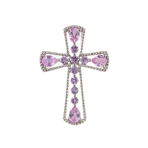 | テーパーカットを施したルビーのクロスモチーフペンダントトップ。間には輝きの良いラウンドカットダイヤモンドを配しました。2種の石のコントラストが際立ち、華やかな印象を与えるデザインです。 |