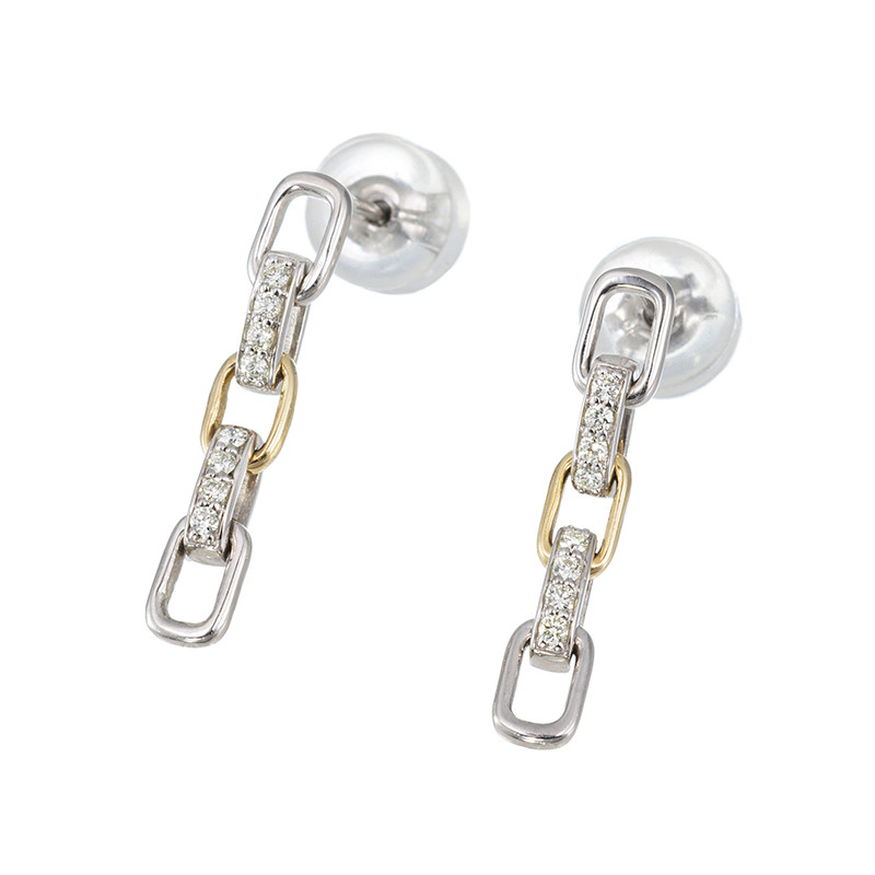 PT950/K18YG ダイヤモンド Link ピアス D 約0.08ct
