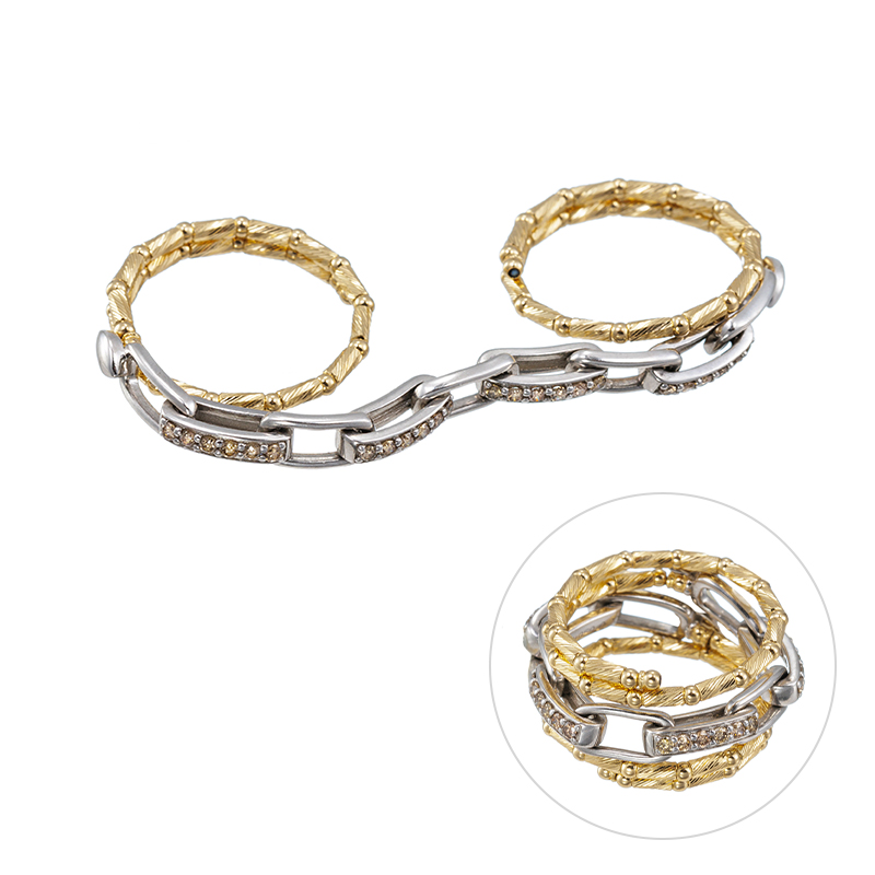 PT950/K18YG ブラウンダイヤモンド Link フリーリング BRD 約0.20ct 8~23号