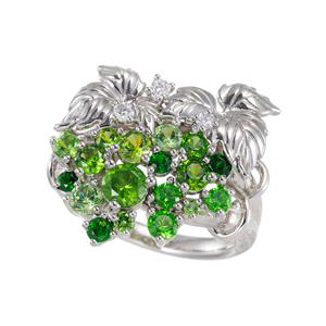 | スリーピングビューティーターコイズやゾイサイト、ペリブラウンダイヤをセットしたマルチジェムデザイン。カラフルで華やかな色彩が手元に存在感を添え、ボリューム感のあるフォルムながら軽やかさも感じられます。日常にも特別な日にも映える一品です。 セットアップにおすすめ(リング:5091988) |