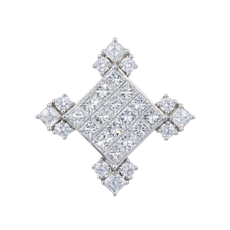 PT950 ダイヤモンド & アッシャーカットダイヤ(リリーダイヤカット) ミステリーセッティング ペンダントトップ D 約1.70ct(LI) D 約0.35ct(LI)