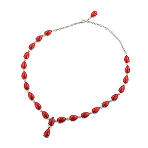 | 【2026年3月ガイド誌掲載】MARIデザイン 1点もの。深みのある血赤サンゴを主役にしたネックレス。ダイヤモンドをバランスよく配し、モダンなデザインにお仕立てしました。特別なシーンでも上品な存在感を放つ、GSTVならではのジュエリーです。 |