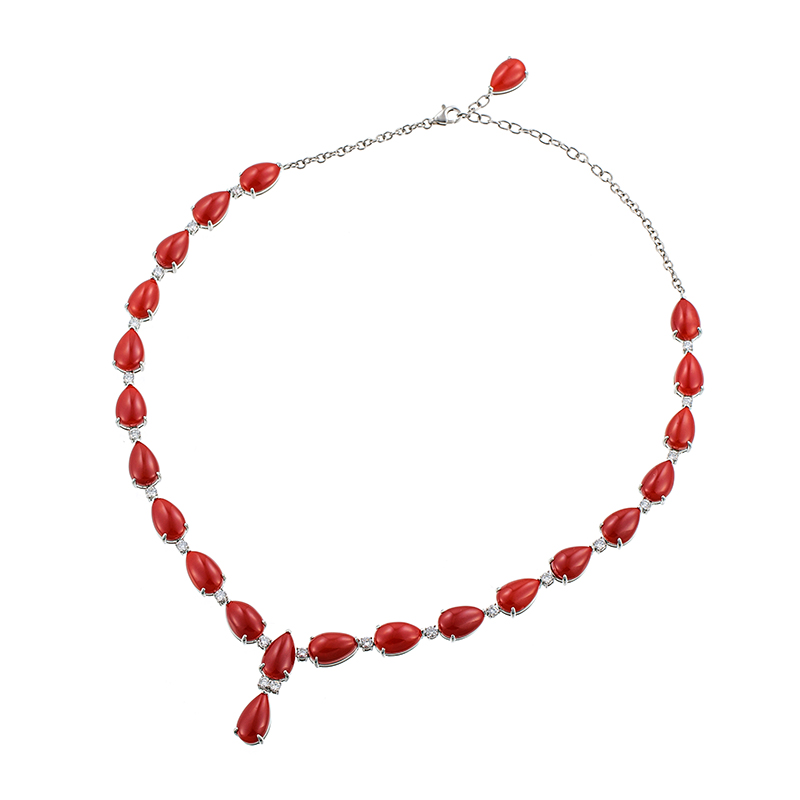PT950 血赤サンゴ ダイヤ ネックレス COR 65.64ct D 1.78ct