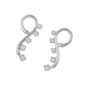 | オーバルカットのブルージルコンを5石使用し、しずく型の枠の中に可憐な花のように配したネックレス。透明感あふれるブルーに、天然ホワイトジルコンの澄んだ輝きを重ねることで、清らかな雫が光をまとったような美しさを表現しました。鏡面仕上げの地金が優しく光を反射し、胸元に上品な華やぎを添えます。爽やかでフェミニンな印象のジュエリーです。 |