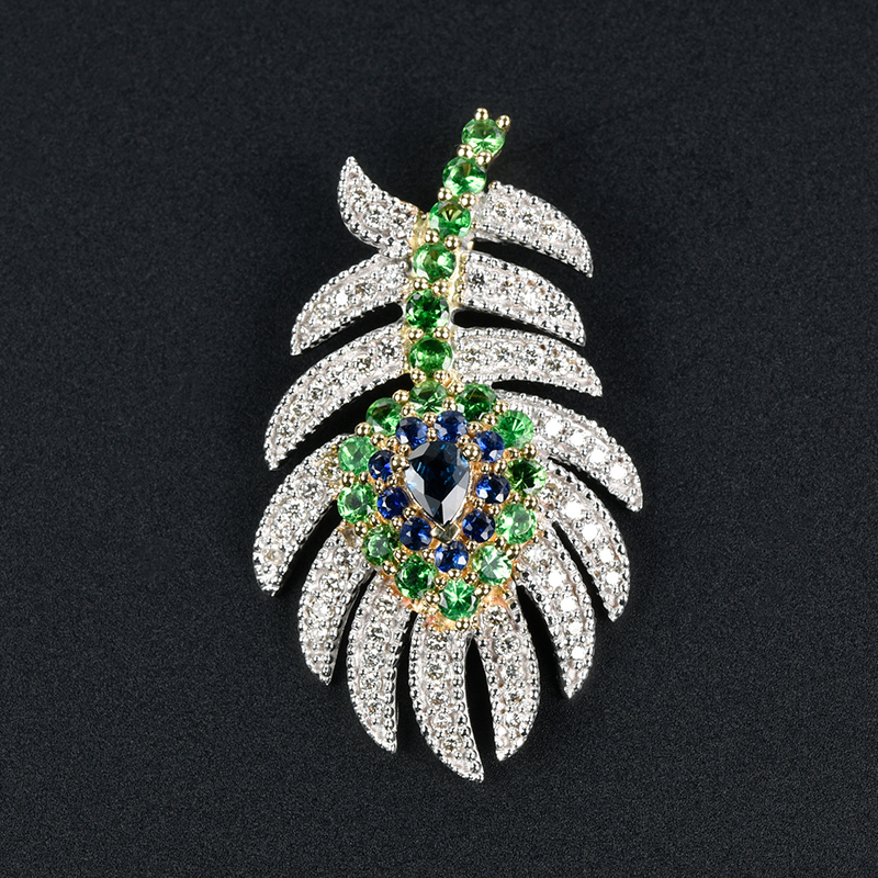 | MARIデザイン 羽の繊細な雰囲気を演出するために縁にミル打ちを施した、孔雀の羽モチーフのペンダントトップです。 セットアップにおすすめ リング(商品ID:5010754) |