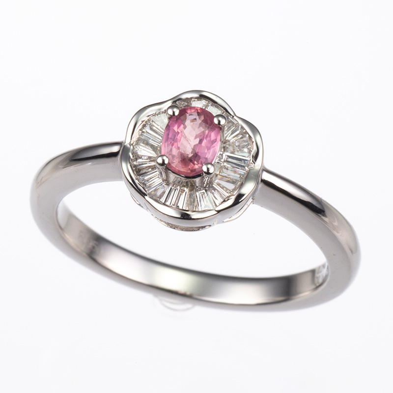 PT950 パパラチアサファイア ダイヤ リング PPS 約0.25ct D 約0.16ct