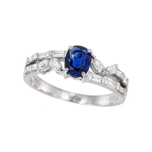| 【2025年7月ガイド誌掲載】1点もの。希少なベトナム産コバルトスピネルのリング。深く澄んだブルーが魅力の中石を主役に、2種のカットを施したダイヤモンドを繊細にあしらい、華やかに仕立てました。透かし模様の美しい幅広デザインが指元に存在感をもたらし、特別なシーンにも映えるゴージャスなジュエリーです。 |