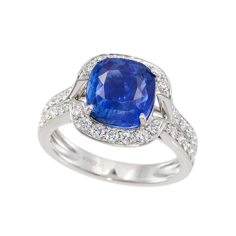 PT950 スリランカ産非加熱サファイア ダイヤ リング SA 4.039ct D 0.62ct