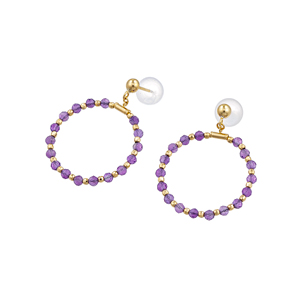 K18YG アメシスト サークルピアス 縦:約26.0mm 横:約20.0mm 総重量:約0.9g