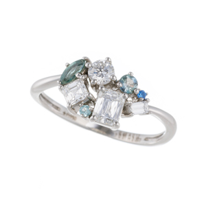 PT950 ダイヤモンド(リリーダイヤカット) ブラジル産アレキサンドライト ブラジル産パライバトルマリン アウイナイト リング D 約0.65ct(LI) AL 約0.12ct PRT 約0.01ct HA 約0.003ct