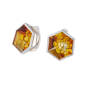 PT950 ムンシュタイナー マジックアイカット シトリン フェザータッチイヤリング CI 21.37ct