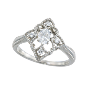 PT950 Dカラーダイヤモンド & ダイヤ ミルグレイン リング D 約0.30ct(D SI1) D 約0.05ct