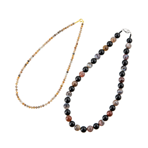 5094580: SV/K18YG ブラックサンストーン & オニキス 縞メノウ ネックレス 2点セット SS 約52.00ct ON 約224.00ct AG 約215.00ct
