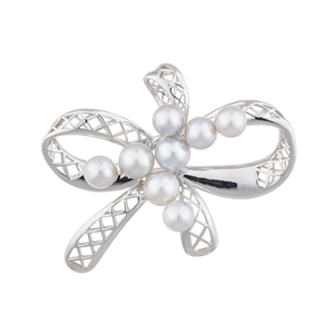 SV 越物 アコヤ真珠 ナチュラルカラー レイシーリボン ダブルロックショートナー P 約5.0mm