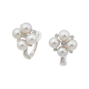 SV 越物 アコヤ真珠 ナチュラルカラー ホワイトトパーズ フェザータッチイヤリング P 約5.0mm TO 約0.14ct