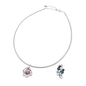 SV 有核淡水真珠 ナチュラルラベンダー デザインオメガネックレス & アコヤ真珠(トリート) & アコヤ真珠 ペンダントトップ 2点セット P 約10.0mm P 約4.0-6.0mm P 約4.0mm 約46cm