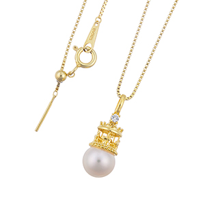 SV アコヤ真珠 ホワイトトパーズ メリーゴーランドモチーフ デザインネックレス P 約8.0mm TO 約0.01ct 約50cm