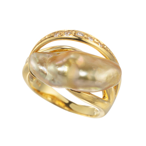 K18YG 白蝶ケシパール ナチュラルゴールデン ダイヤ リング P 約7.9×18.9mm D 0.07ct
