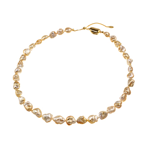 SV カラミアン産 白蝶ケシパール ナチュラルゴールデン イタリアンデザインネックレス P 約4.0-6.0mm 約60cm