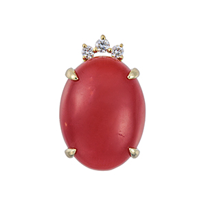 K18YG 血赤サンゴ ダイヤ ペンダントトップ COR 約3.00ct D 約0.03ct