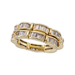 2本の貴金属の長いレールの間にガードル部分を挟まれた状態で、宝石が並んでセットされる方法です。