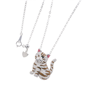 パラジウムシルバー950 ブラウンダイヤモンド 天然ホワイトジルコン エナメル ネックレス BRD 約0.05ct ZI 約1.00ct