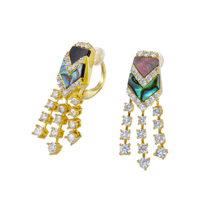 パラジウムシルバー950 黒蝶貝 アバロンシェル 天然ホワイトジルコン Mia フェザータッチイヤリング ZI 約2.90ct