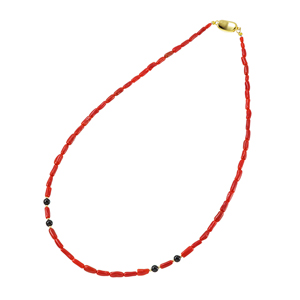 SV/K18YG 地中海サンゴ ブラックスピネル ネックレス COR 約35.00ct SP 約2.00ct