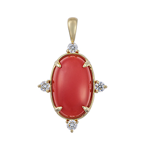 K18YG モモサンゴ ダイヤ ペンダントトップ COR 約8.00ct D 約0.02ct
