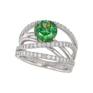 ガーネットの中でも特別な価値を持つデマントイドガーネット。ダイヤモンドをしのぐ高い分散率と屈折率で見事な煌めきとファイヤを見せる宝石です。