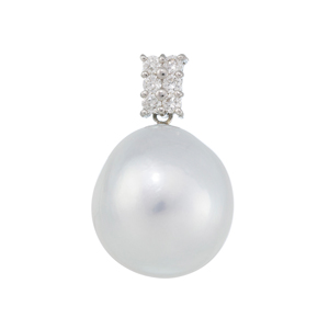 K18WG 白蝶真珠 ダイヤ ペンダントトップ P 約11.0mm D 0.10ct