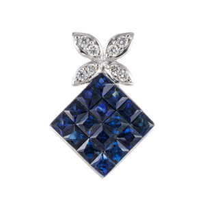 K18WG サファイア ダイヤ ミステリーセッティング ペンダントトップ SA 約1.00ct D 約0.07ct