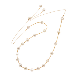 K18YG アコヤ真珠 ミックスカラー & シャイニー 2WAY ステーションネックレス P 約6.5-8.0mm 全長 約70cm