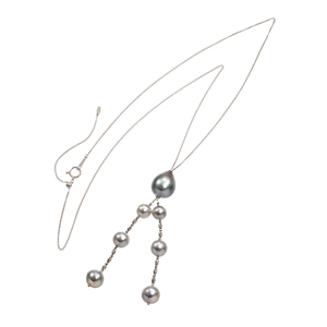 SV/PT850 ナチュラルブルー アコヤ真珠 アレンジスーパーロングネックレス & チャーム 2点セット P 約7.5mm 全長 約130cm PK付