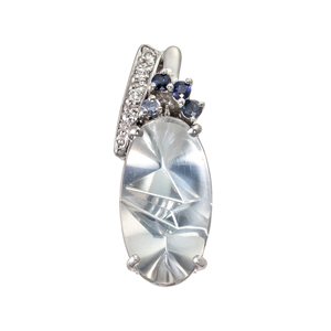 K18WG ムンシュタイナーカット ムーンストーン& ダイヤモンド& ブルーサファイア ペンダントトップ MO 2.91ct D 0.03ct SA 0.10ct