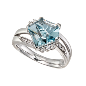 【16号】K18WG アクアマリン ダイヤモンド リング AQ 2.90ct D 0.13ct