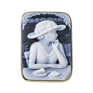 SV メノウカメオ 赤メノウ 白蝶貝 ペンダントブローチ カメオ 約35×27mm