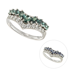 【13.5号】K18WG ダイヤモンド & スピネル & パライバトルマリン リング D 0.33ct SP 0.30ct PRT 0.25ct