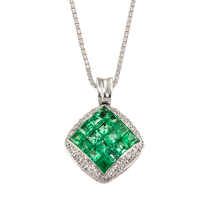 K18WG エメラルドダイヤモンド ミステリーセッティング ネックレス EM 約1.21ct D 0.45ct