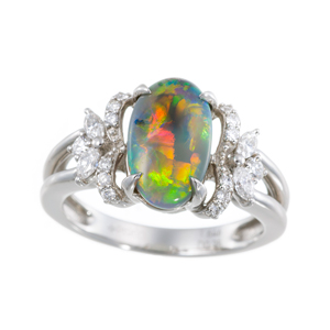 【13号】PT950 ブラックオパール ダイヤ リング BO 1.646ct D 0.35ct