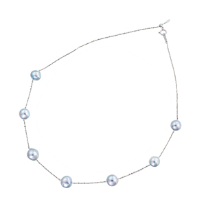 PT850 ナチュラルブルーカラー アコヤ真珠(凪輝) スフル・ダルジャン・ブルー オメガステーションネックレス P 約6.0-7.5mm 全長 約45cm