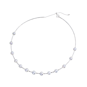 JSM54674: PT850 ナチュラルブルーカラー アコヤ真珠(凪輝) スフル・ダルジャン・ブルー オメガステーションネックレス P 約6.0-7.5mm 全長 約45cm143,000円(税込)