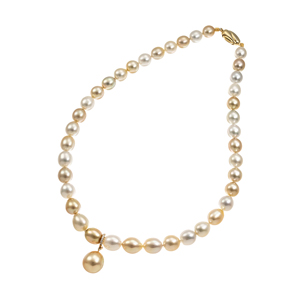 SV/K18YG 白蝶真珠 ダイヤモンド ネックレス (N)P約9.0-10.0mm (PH) P約13.0mm D 0.06ct 約45cm