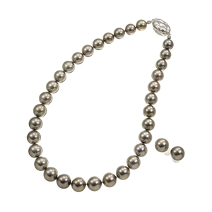SV 黒蝶パール ネックレス & K14WG 黒蝶パール ダイヤモンド ピアス 2点セット P 約10.0-11.5㎜ 約41㎝