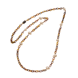 本べっ甲 アコヤ真珠 バロック チェーンネックレス P 約7.0-8.0mm