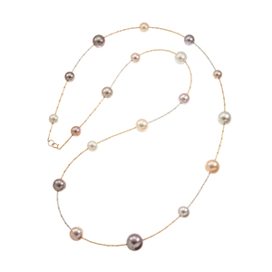 K18YG/WG/PG 有核淡水真珠 マルチカラー ”Style Memory” ロングネックレス P 約8.0-13.0mm 約90cm