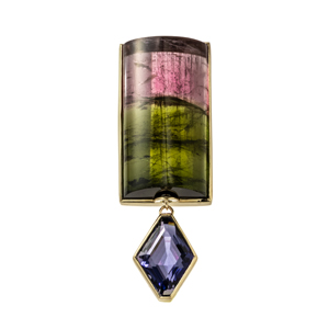 K18YG パーティーカラートルマリン アイオライト ペンダントトップ T 93.737ct